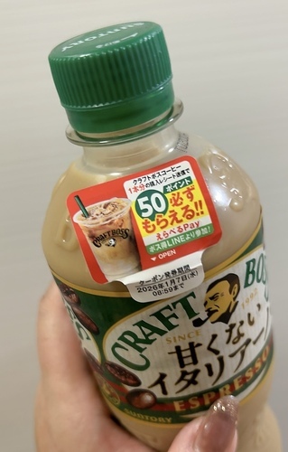 スーパーに買い物行ったら、クラフトボス CRAFT BOSSにもれなくえらべるpay50ptもらえるシールついてました!