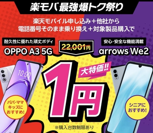 ・①の「三木谷キャンペーン」とは別枠で2回線まで追加可能〓