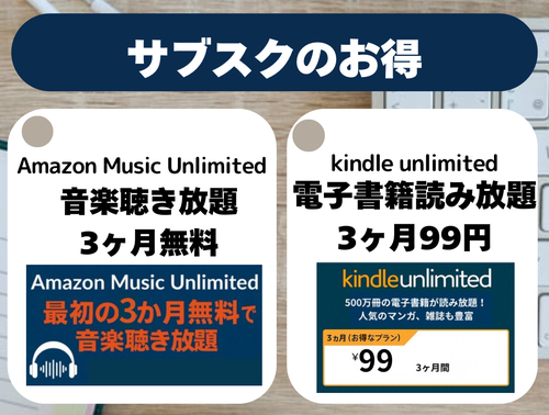 【Amazon お得3選】Music Unlimited無料/Kindle 99円/Apple Gift Card最大9%還元