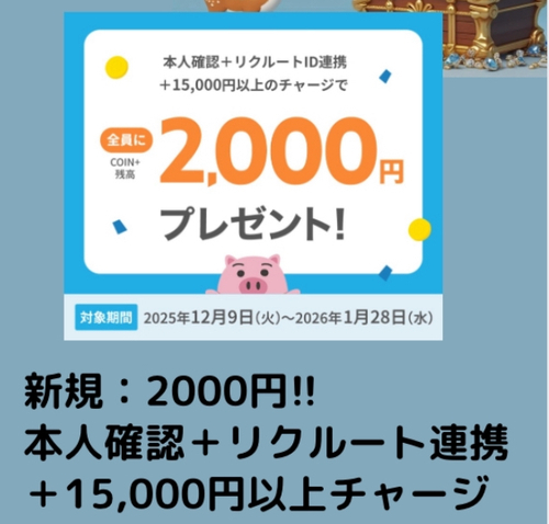 ②【新規】15,000円以上チャージで2,000円