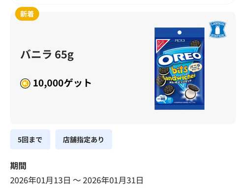 また、レシートアプリ【レシチャレ】(旧名クラシルリワード)にて、ローソンでオレオ(162円)をエアウォレットで購入