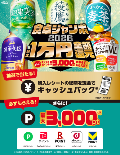 【ウエル活でも】お茶1本で30pt必ずもらえる!最大3000pt還元キャンペーンまとめ