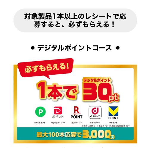 - ②応募者全員1本30ptのデジタルポイントが必ずもらえる