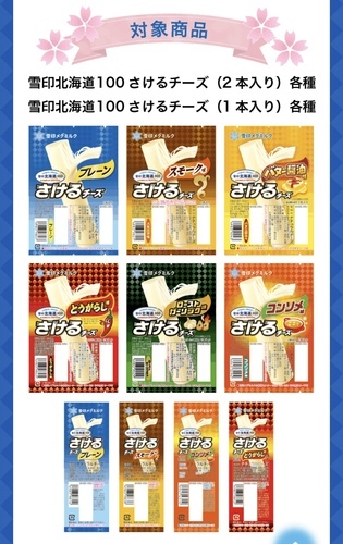対象商品:雪印北海道100 さけるチーズ(2本入り/1本入り)各種