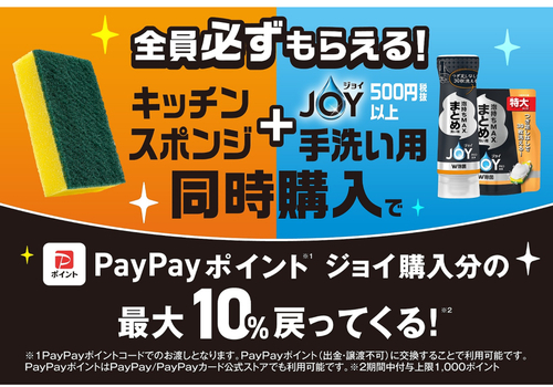 - 『ジョイ手洗い用製品の』税抜購入金額の最大10%をPayPayポイントで付与