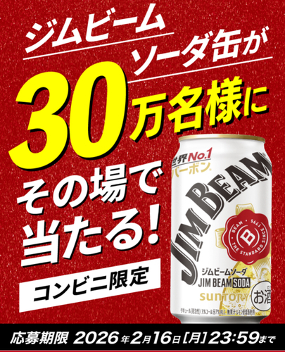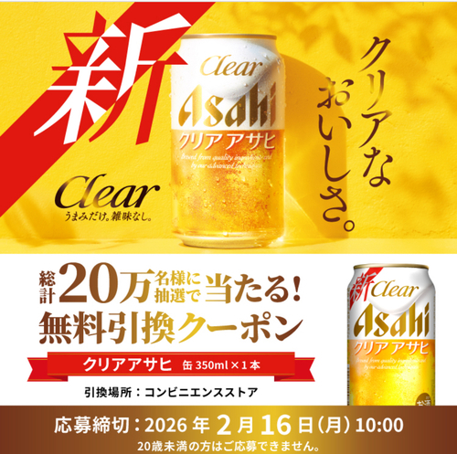 【大量当選懸賞】①スーパードライ ②クリアアサヒ ③のどごし ④本搾り ⑤ジムビーム