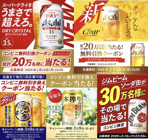 〓大量当選コンビニ無料引換キャンペーンまとめ