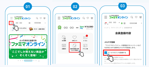 キャンペーン期間終了までに、ファミマオンラインのメルマガ登録を完了