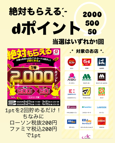 〓 https://dpoint.docomo.ne.jp/cp_7/list_260227_7252/index.html