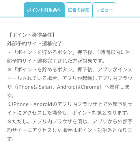 外部予約サイト遷移完了で30円分!