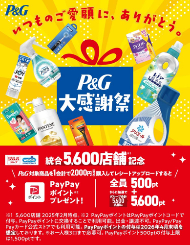 【最大1,500円確定】P&G×ツルハ・ウエルシアでPayPayポイント還元|2,000円ごとに応募OK