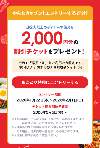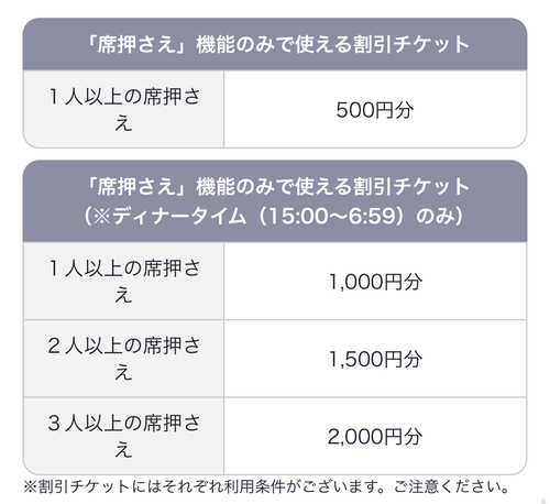 - 「席押さえ」機能の初回利用が条件