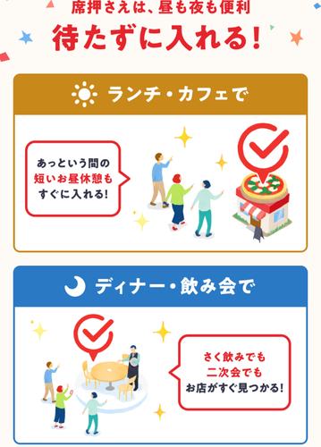 この「席押さえ」機能ならその場で空席が確認できてスムーズな外食予約が可能です。
