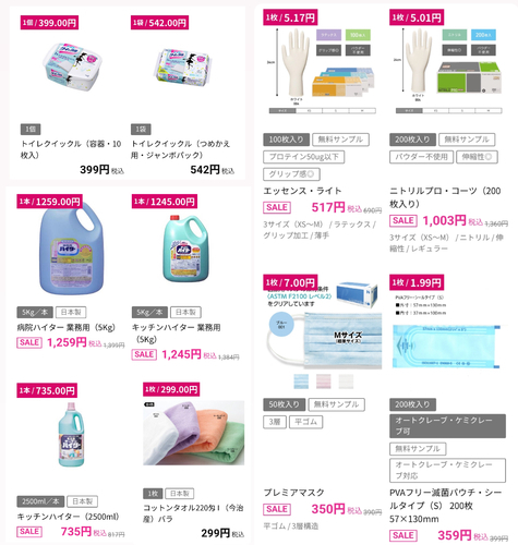 歯科医院・病院用衛生用品の日用品を法人/個人向けに扱っている